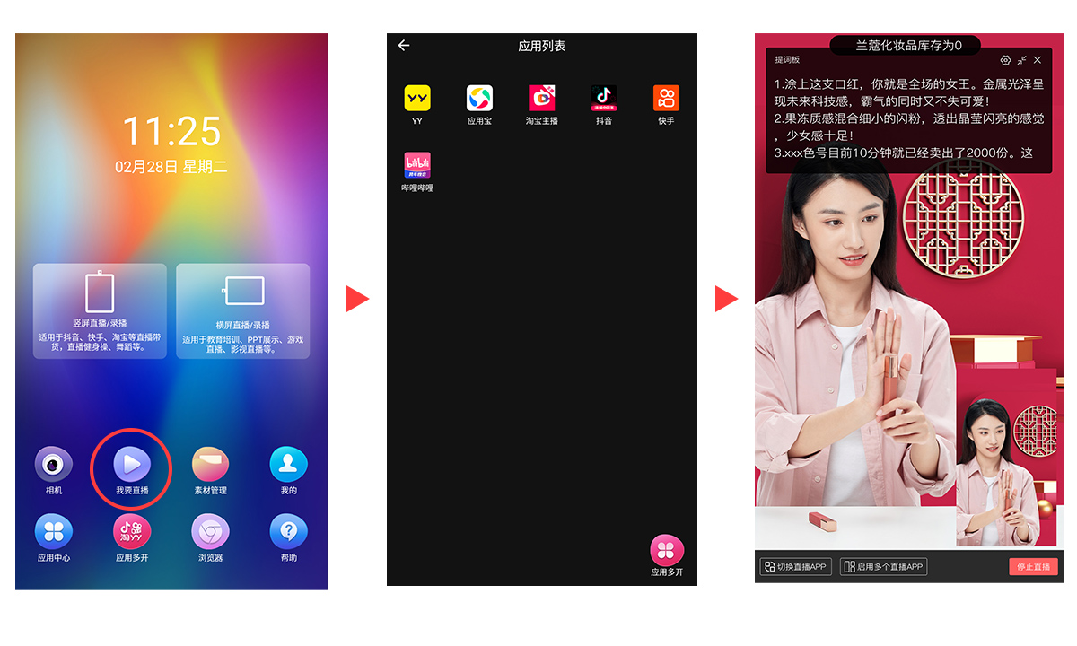 进入直播主机主界面,点击"我要直播",进入界面,选择直播APP,即可开始直播。